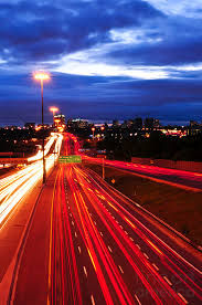 This another picture of someone standing on top of a freeway and the lights are what are blurred.